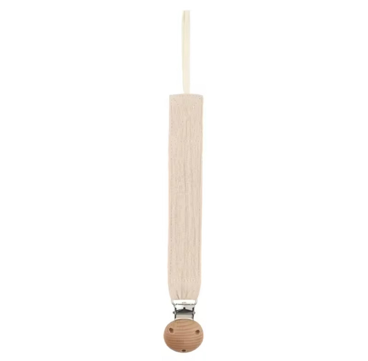 Conçue en tissu délicat et sublimée par une attache en bois naturel, l’attache-tétine allie douceur et élégance. Chaque détail est pensé pour offrir un accessoire harmonieux et adapté à l’univers tendre de bébé.
